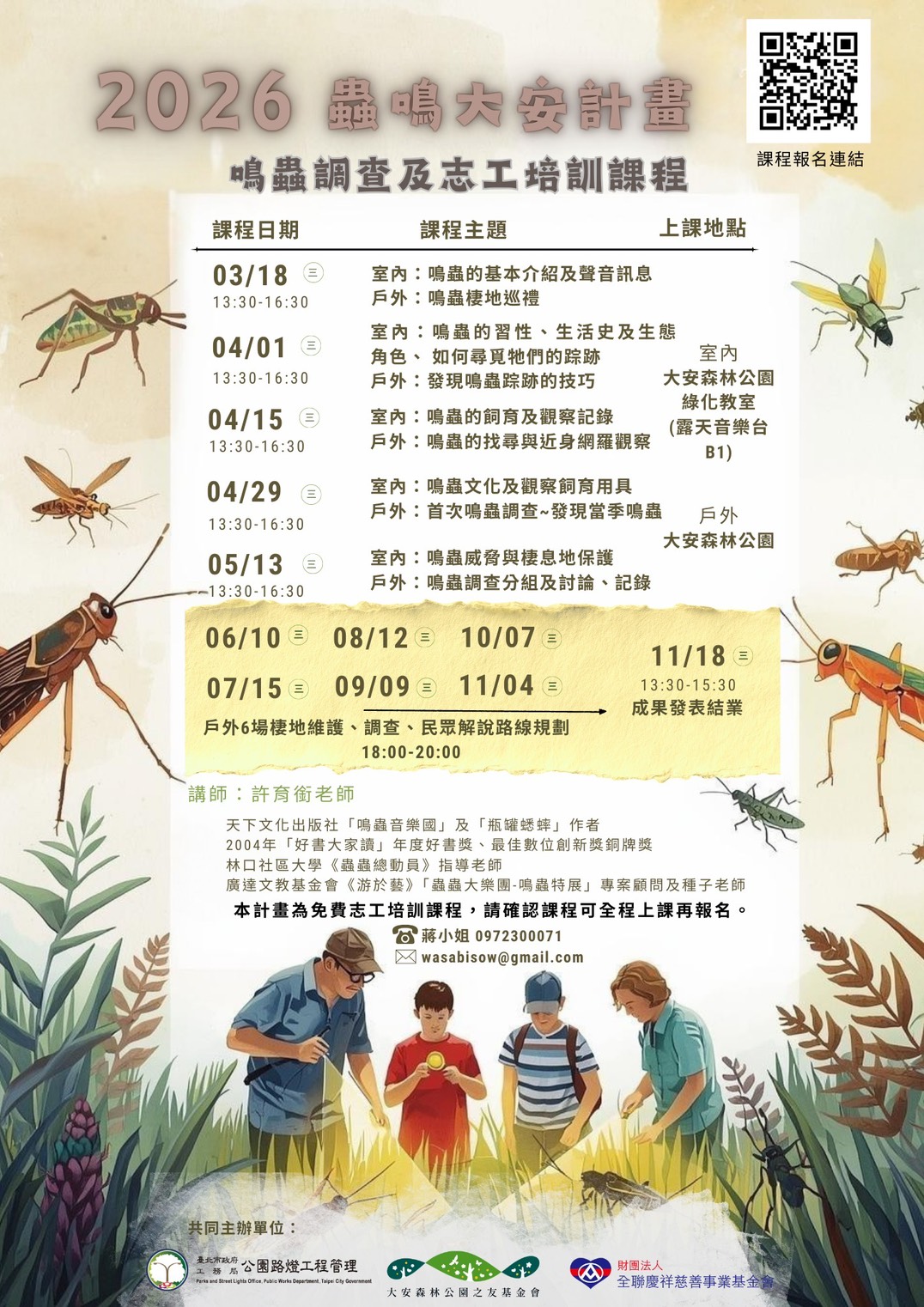 2026蟲鳴大安計畫『鳴蟲調查及志工培訓課程』