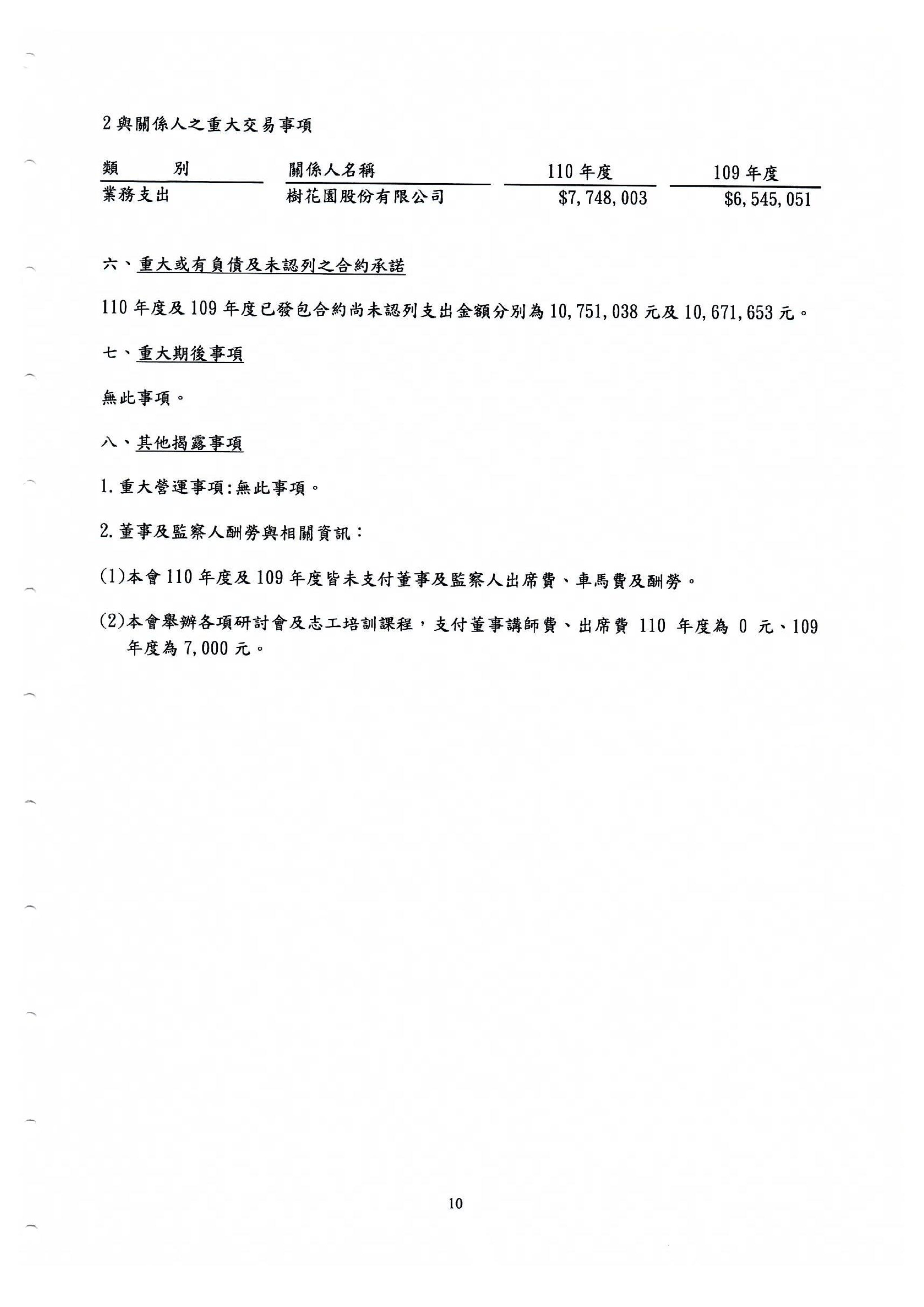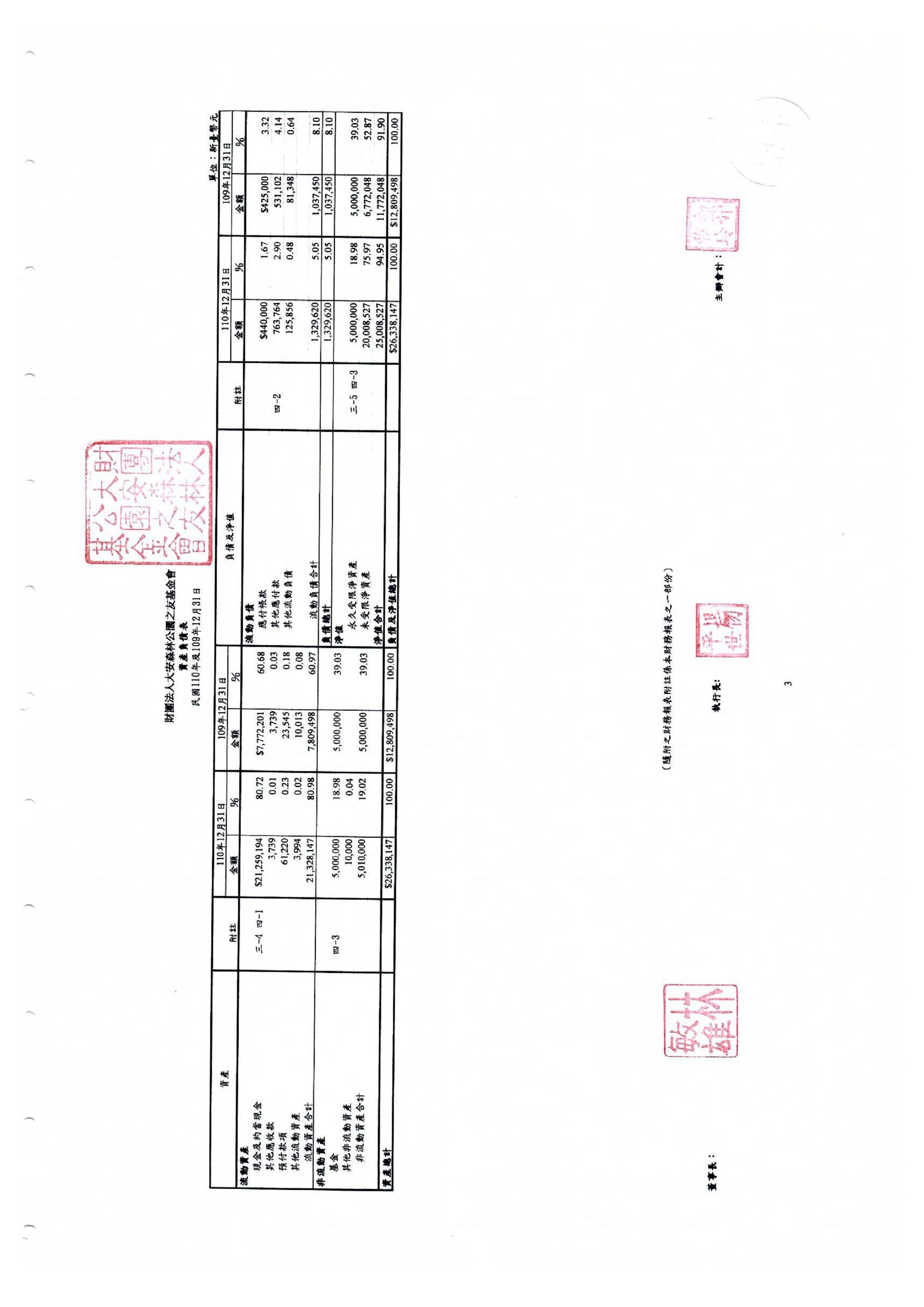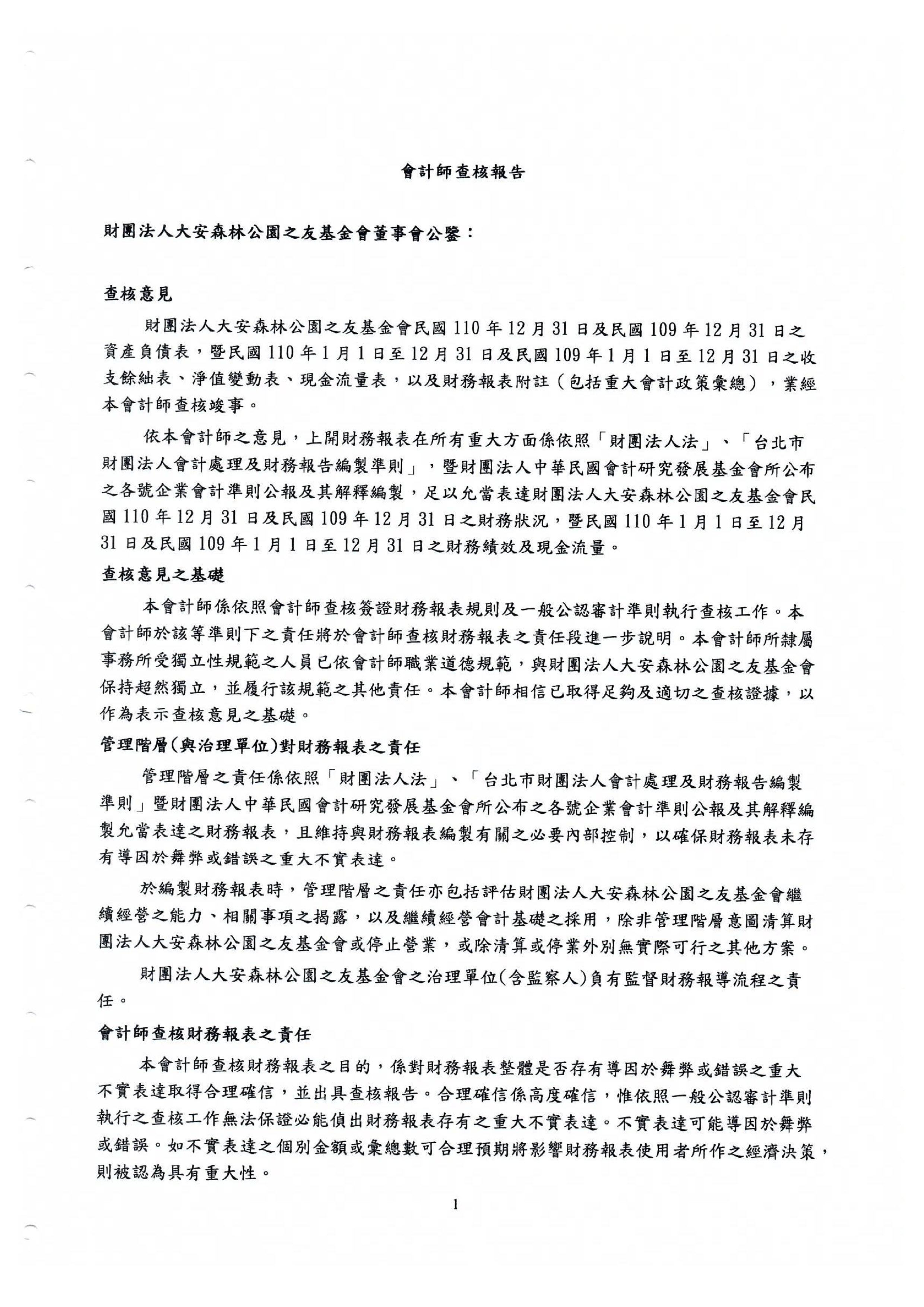 財團法人大安森林公園之友基金會 財務報表暨會計師查核報告 民國一一○年度及一○九年度